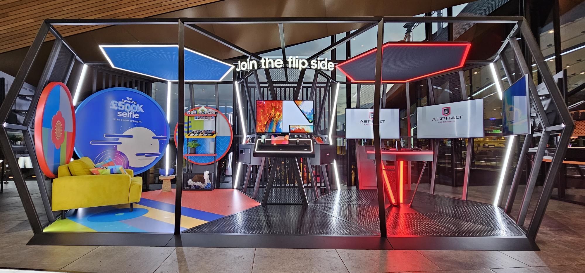 The latest in our hero display executions on behalf of Samsung – we are briefed to create an experience to launch two of the new mobile devices. The over-arching message was ‘Join the flip side’ – encouraging consumers to take that step into the world of a foldable device, whether that be the Flip or the Fold.